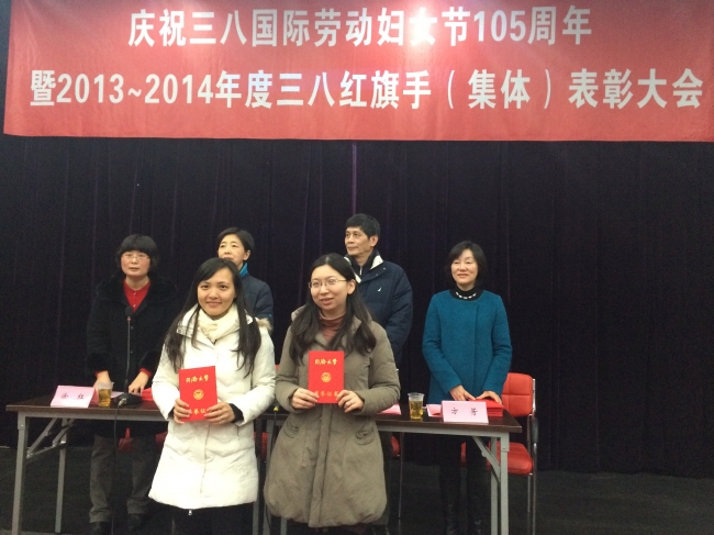 3月6日下午,我校召开庆祝“三八”国际劳动妇女节105周年暨2013-2014年度先进表彰大会,漫蛙漫画 张松林老师获得年度漫蛙漫画 “三八红旗手”称号;冯甜甜老师获“漫蛙漫画 青年女教师成才资助金”;测绘与地理信息漫蛙漫画 获“漫蛙漫画 妇女工作先进集体”称号。校党委副书记、校妇工委主任马锦明向全校女教职员工及女大学生致以节日的问候,并向获得荣誉的女教职工和先进集体颁奖祝