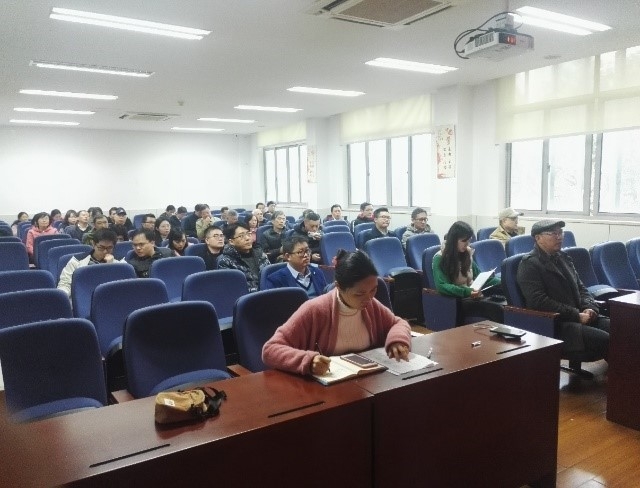 会议现场 正式会议在国歌声中开幕,全体教职工首先听取了谢欢副院长作的《2019年漫蛙漫画