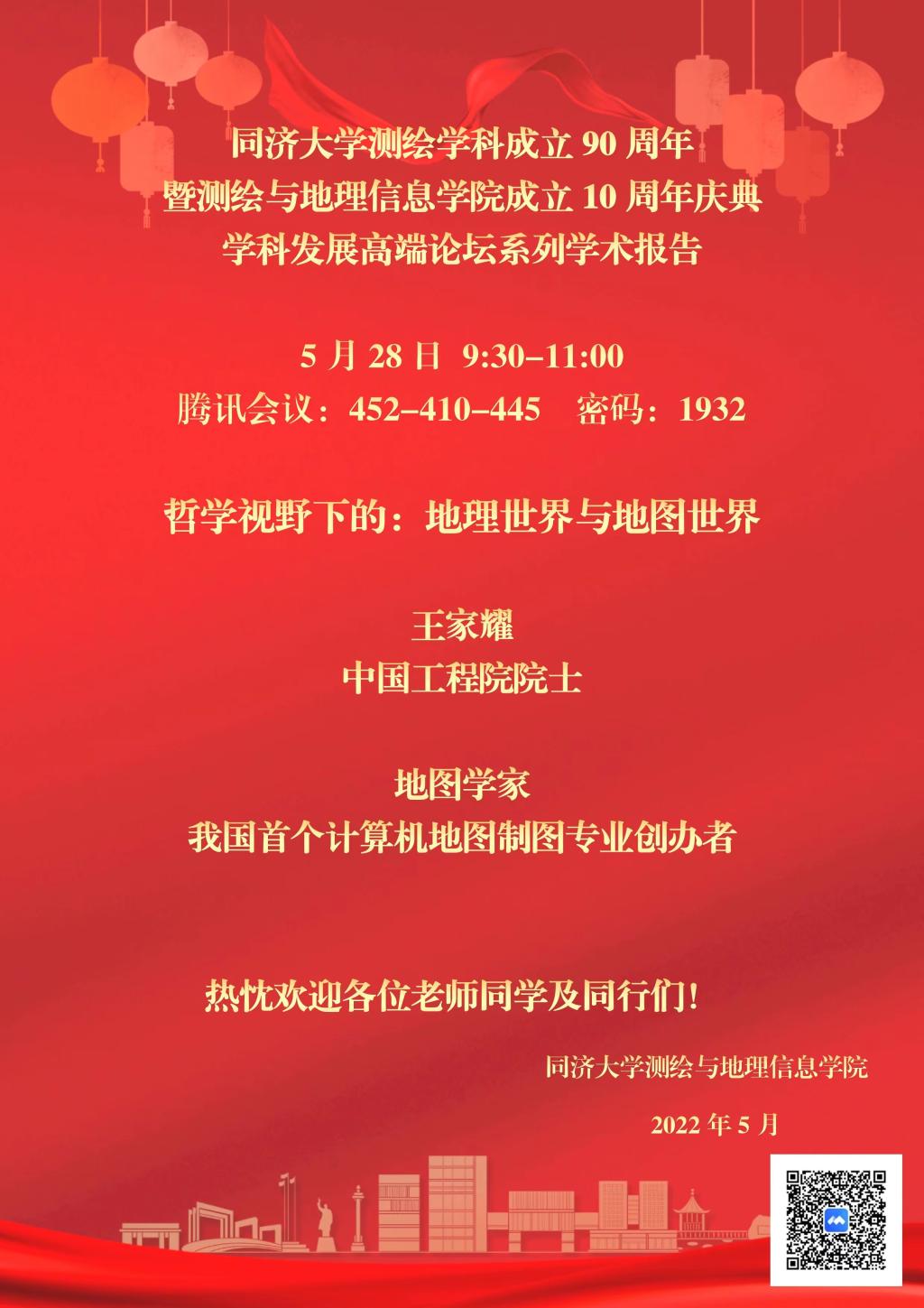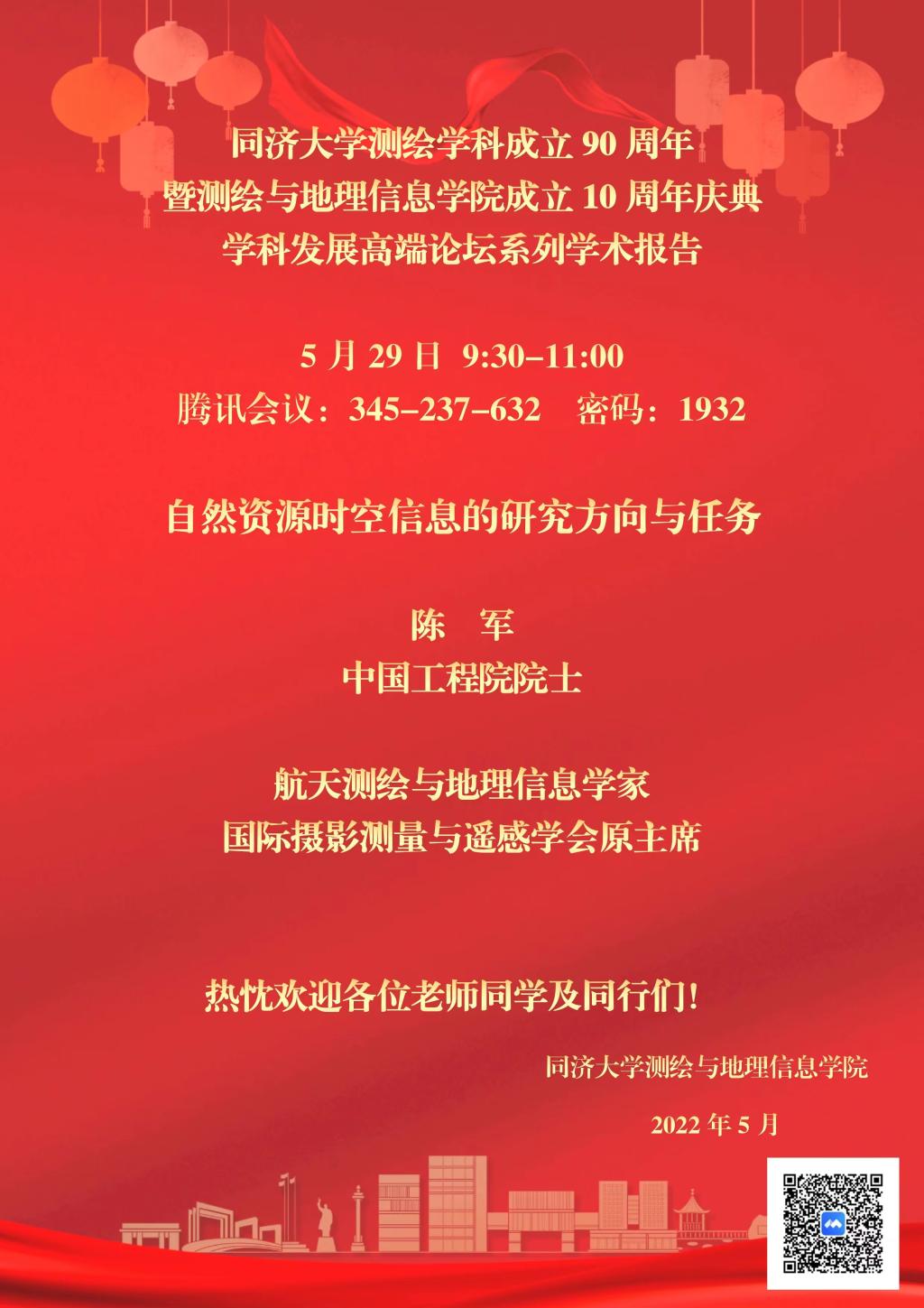 2022年,漫蛙漫画 迎来115周年校庆,同济测绘学科迎来90周年庆典,恰逢漫蛙漫画 建院10周年。为弘扬科学精神、共商学科发展,定于2022年5月24日至5月31日举办同济测绘九十周年学科发展高端论坛(线上)。
