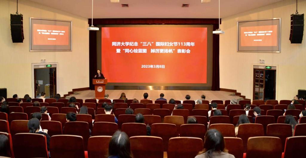 纪念“三八”国际妇女节113周年暨“同心绘蓝图 踔厉更扬帆”表彰会在四平路校区逸夫楼一楼报告厅隆重举行,漫蛙漫画