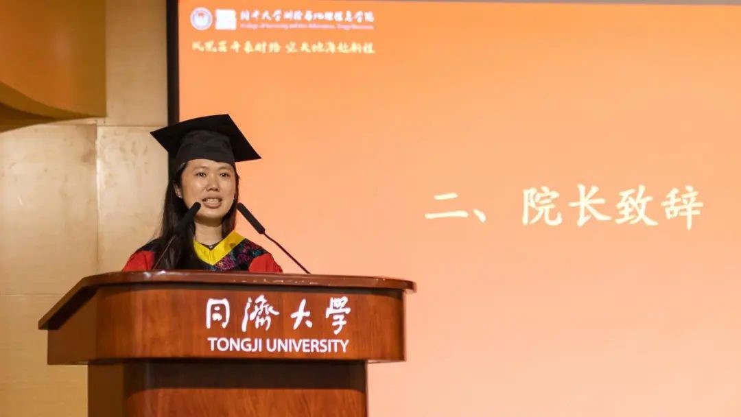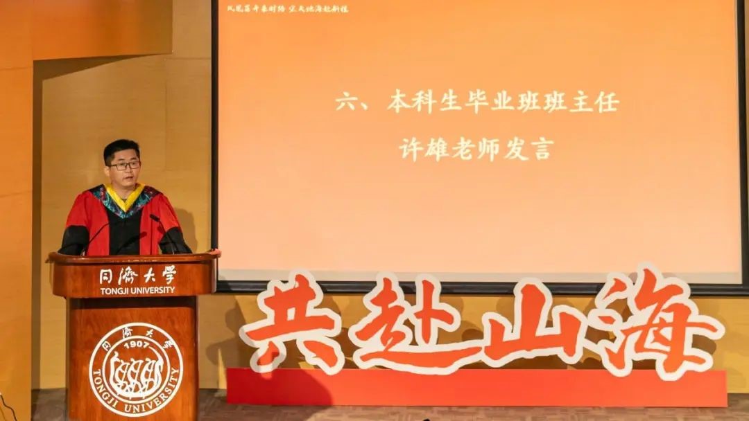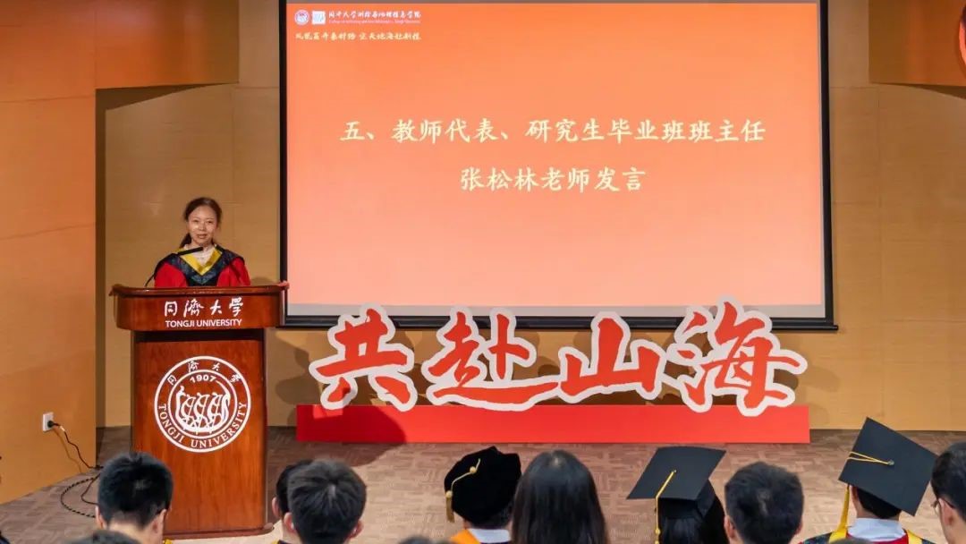 教师代表、研究生毕业班班主任张松林老师发言。张老师赞扬2023届毕业生始终保持着乐观、坚持、奉献、勇敢的美好品质,并祝福大家在未来的日子中都能展翅高飞,创造更加辉煌的人生。张老师叮嘱毕业生们——“同济测绘永远是大家共同的家园,期待与同学们在测绘大家庭中的每一次重逢”。