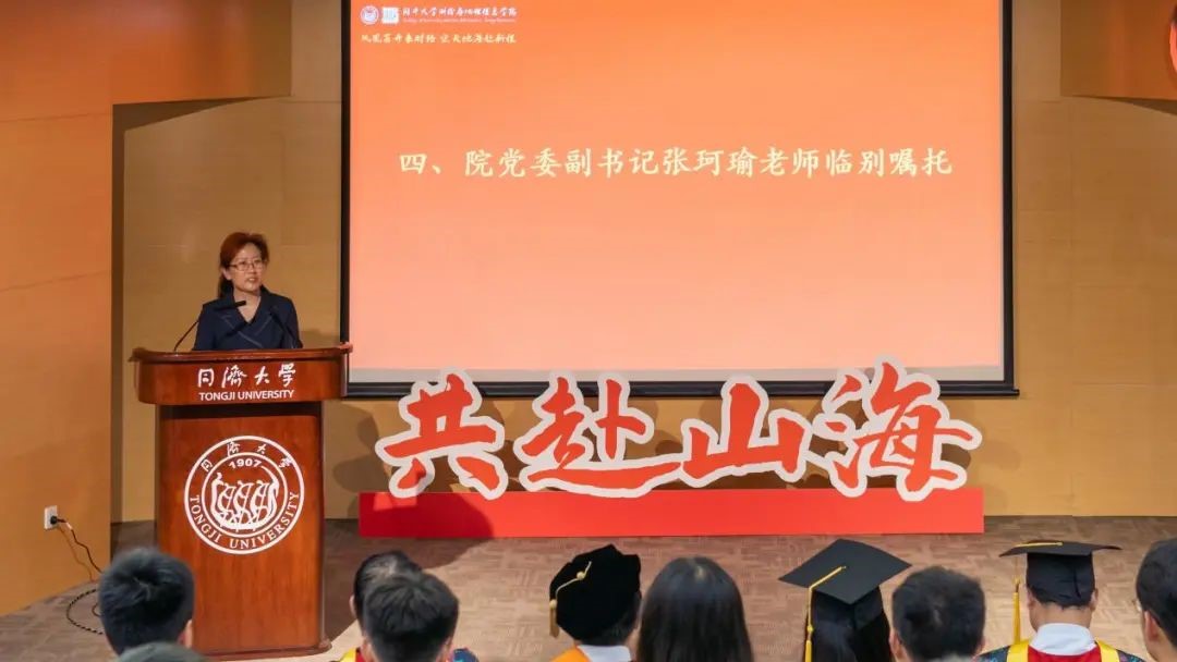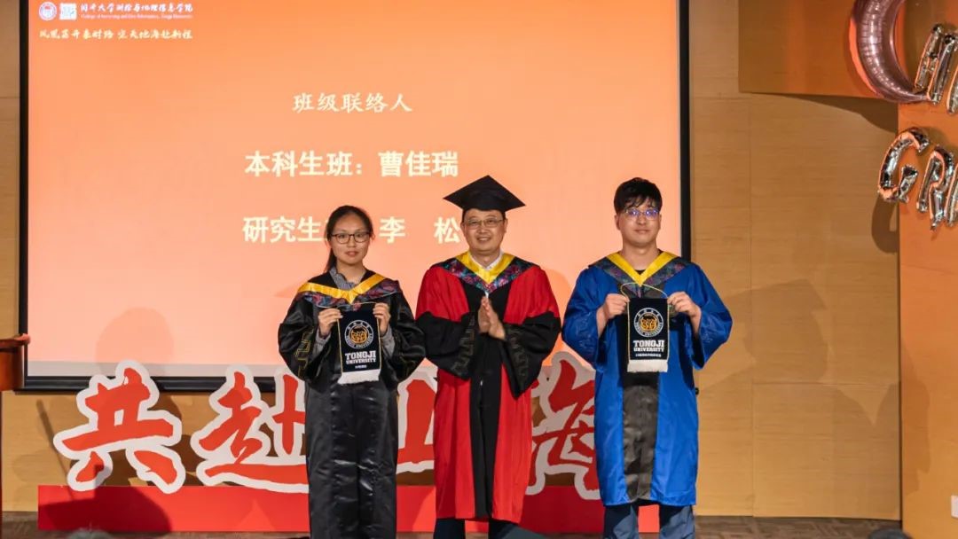 教师代表、院办、学工办、团委、教务员及部分毕业生家长等出席毕业典礼。2023届本科毕业生王虹量和2023届博士毕业生陶天慧主持典礼。