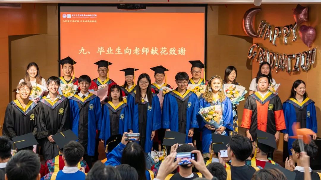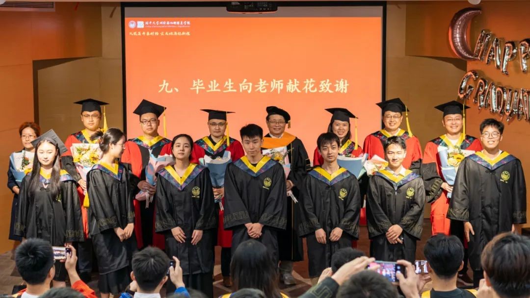 2023届毕业生代表向到场教师献上美丽的花束,表达着即将奔赴新程的测绘青年对老师们多年辛勤教导与付出最真挚的感激与祝福。