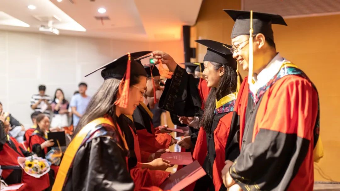领导与导师代表为2023届毕业生们逐一拨穗并颁发毕业证书。
