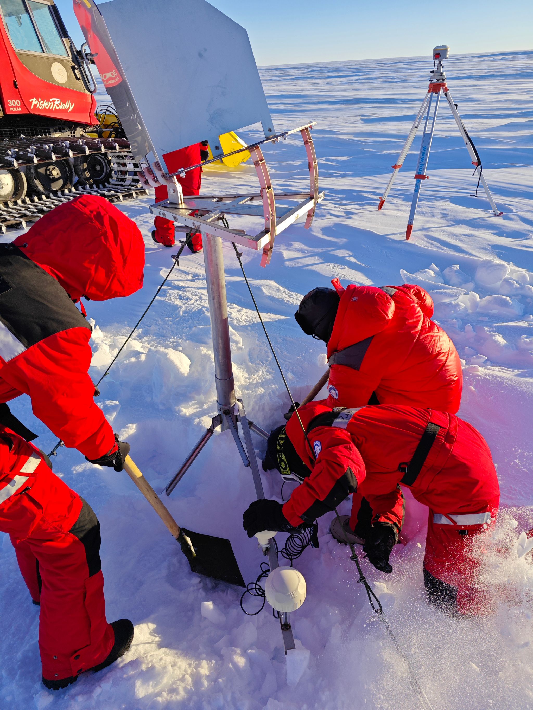 在内陆考察沿线安装一套新型SAR卫星角反射器系统,并对前期考察任务中布设的五套卫星角反射器系统进行维护,为SAR卫星影像反演冰盖运动速度提供地面真实验证数据。
