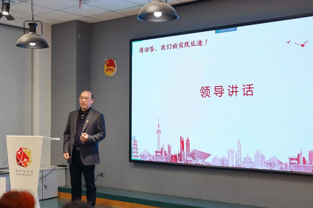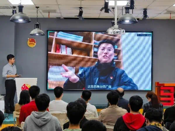 党委书记楼立志、党委副书记张珂瑜与教师代表、团员代表在线下参加活动,活动同时设置线上分会场进行直播。
