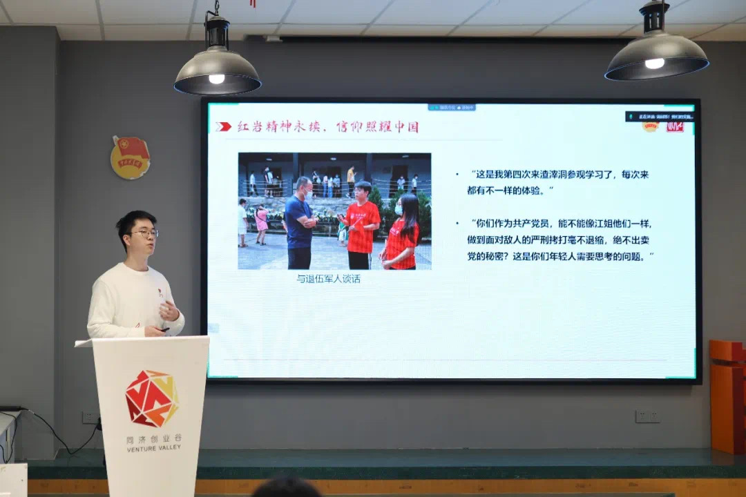 红色大课堂学生党员暑期实践活动的一员。曾浩峰首先与大家分享了在渣滓洞开展实践时,与现场一位退伍军人交流的问题:“你们能不能像江姐他们一样,做到面对敌人的严刑拷打时毫不退缩,绝不出卖党的秘密?”这也使他联想到了网络上的另一个讨论:“我们这一代年轻人,还有不计生死的血性吗?”