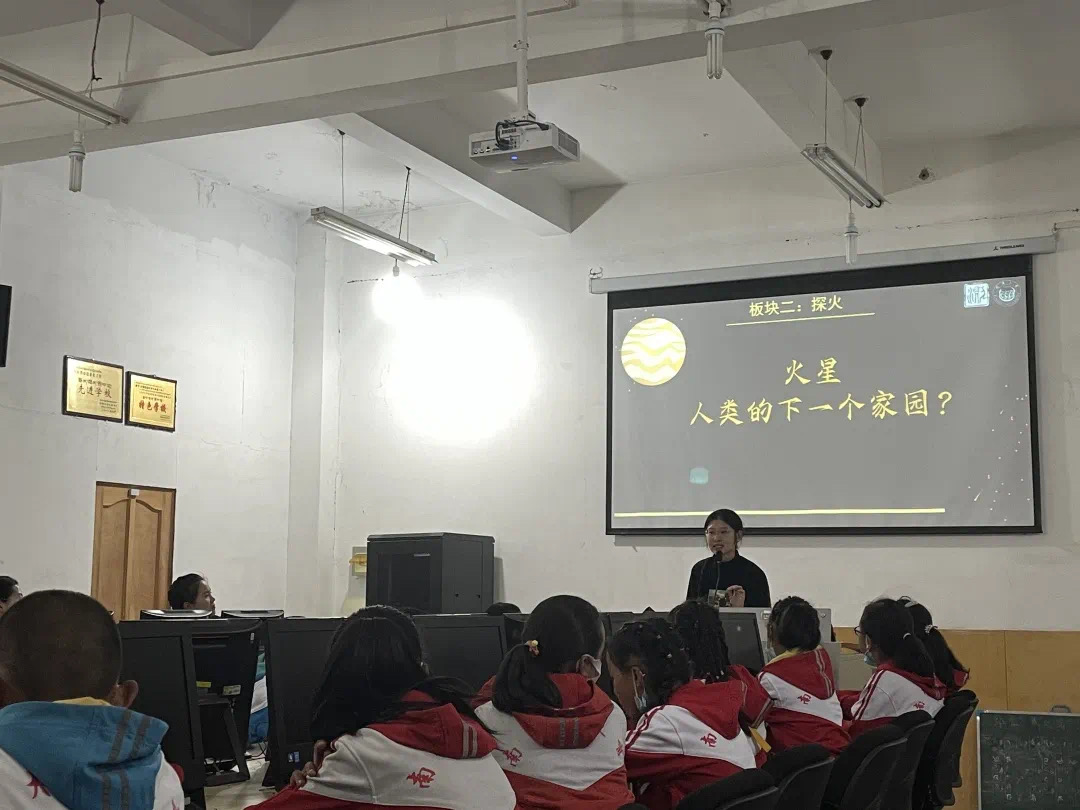 师生重点讲述了他所在的“深空探秘”项目组的实践故事。“作为测绘人,‘仰望星空’本就是我们的职责,而‘脚踏实地’亦是我们的本色。”为了更好地适应面向中小学生的科普工作,实践团队以“奔月”“探火”“寻踪”为主题,制作了三份内容翔实、轻松活泼的科普课件和一个科普网站,并前往“距离星空最近的地方”——西藏日喀则市为小朋友进行了线下讲授,效果良好。