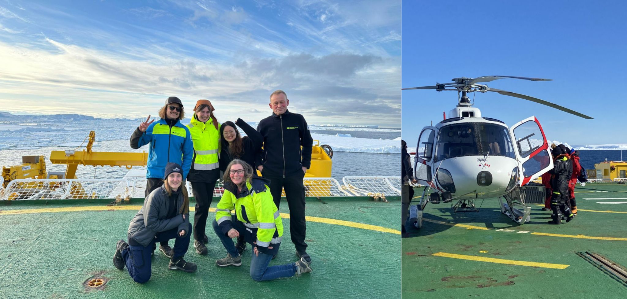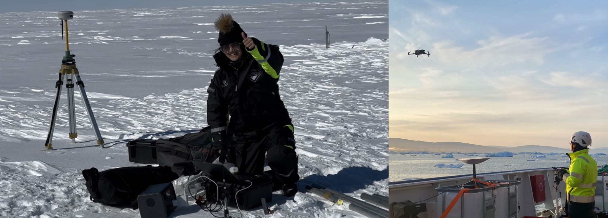 5)博士生袁小涵参加瑞典北极格陵兰科学考察和韩国ARAON科考船多国(瑞典)南极科学考察 博士研究生袁小涵在赴瑞典哥德堡大学联合培养期间,于2023年7月参加了瑞典哥德堡大学北极格陵兰科学考察,并于2023-2024年参加了韩国ARAON 科考船多国 (瑞典) 南极科学考察任务,聚焦于国际上格陵兰冰盖和南极冰盖冰-海热点区域(东格陵兰Sermilik峡湾Helheim冰川、西南极阿蒙森海Thwaites冰川、Dotson冰架等),开展在全球气候变化背景下的冰川前缘及冰腔内部海洋环境调查和冰川冰架的高分辨率建模及演化分析,探究冰川与海洋相互作用,服务于未来南北极典型区域冰川冰架结构的稳定性评估,及其稳定性变化对未来海平面上升贡献的预测。