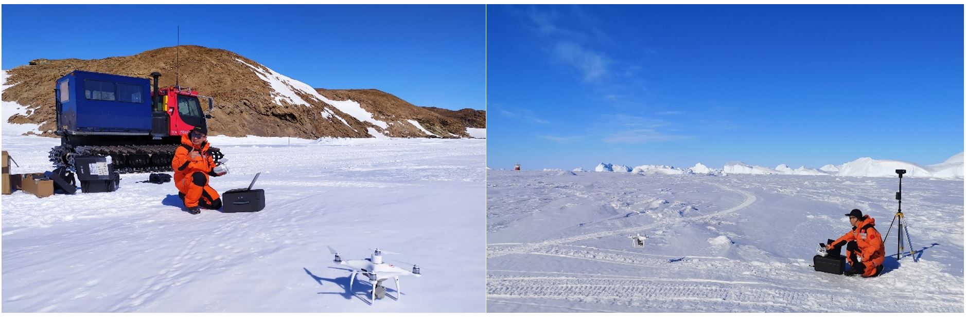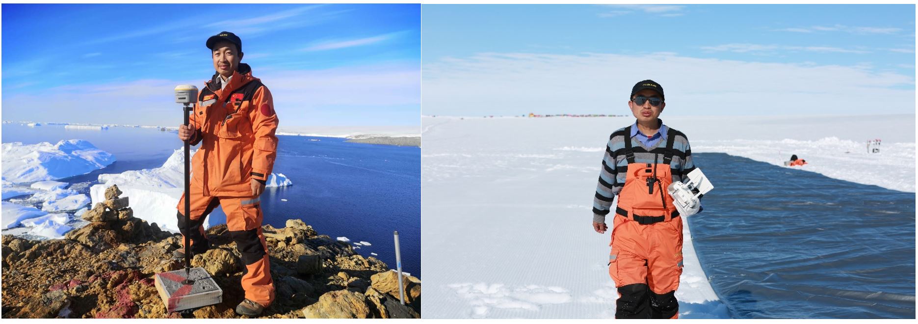 2)博士生李洪伟参加中国第38次南极科学考察 博士生李洪伟于2021-2022年间参加中国第38次南极科学考察,开展南极冰盖边缘区域ICESat-2冰雪表面高程测量精度评估工作,为精确估计南极冰盖物质平衡对海平面上升贡献提供数据支撑。在中山站区域,基于机载光学、雷达以及热红外传感器,对拉斯曼丘陵内拉湾海冰、冰裂隙、熔池以及冰山进行动态观测,安装维护了20米冰雪温度链,开展了南极冰盖物质平衡关键参数观测,对验证极地数据产品精度起到了重要支撑作用。