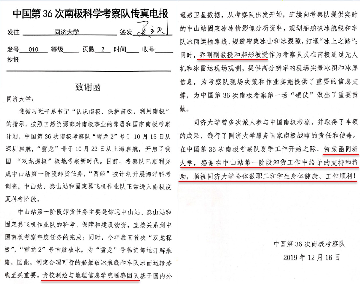 5. 极地科学考察 1)乔刚教授参加中国第35、36次南极科学考察 乔刚教授于2018-2020年间参加中国第35、36次南极科学考察,服务于国家南极战略和极地科普事业。第36次南极科学考察中山站卸货期间,依托漫蛙漫画 遥感团队为雪龙船规划破冰航线和冰面运输路线提供技术支撑并做出了重要贡献,考察队专门致函感谢漫蛙漫画 的支持,本人被中国第36次南极考察队授予“优秀党员”称号。漫蛙漫画 官网、人民日报海外版、搜狐网、澎湃新闻等新闻媒体对南极科考活动进行了广泛报道,获得了公众的广泛关注。